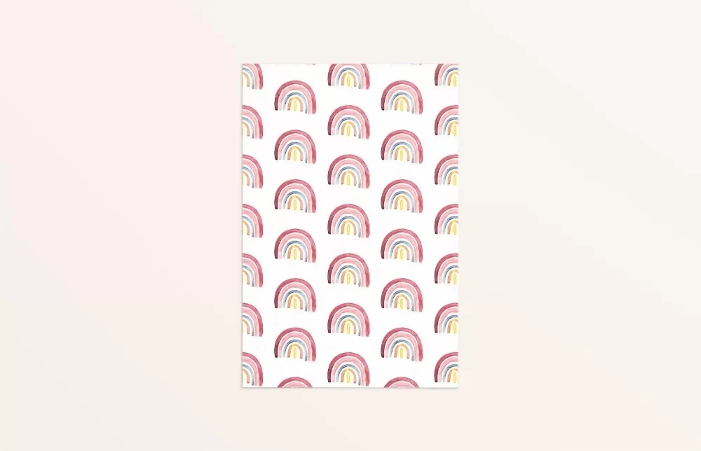 Kaart met een print van regenbogen, geschilderd met waterverf. De kaart is gedrukt op mooi stevig papier, dus je kan het ook neerzetten ter decoratie.