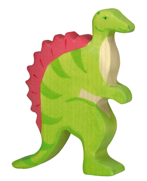 Deze Spinosaurus kijkt recht vooruit. Maak je eigen dinopark met de houten dieren en figuren van Holztiger, daar mag deze Spinosaurus niet in ontbreken. Afmeting: 11.5×2.3×12.5 cm