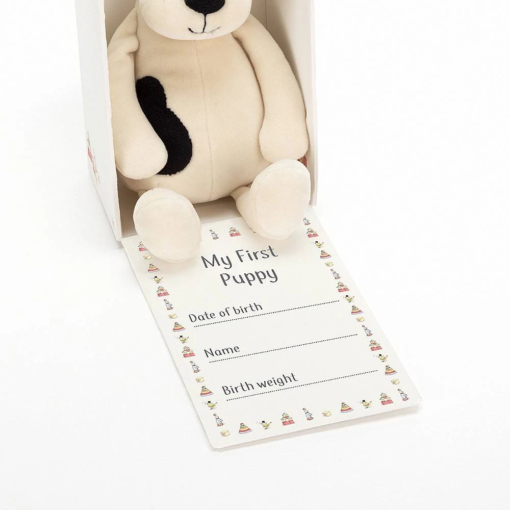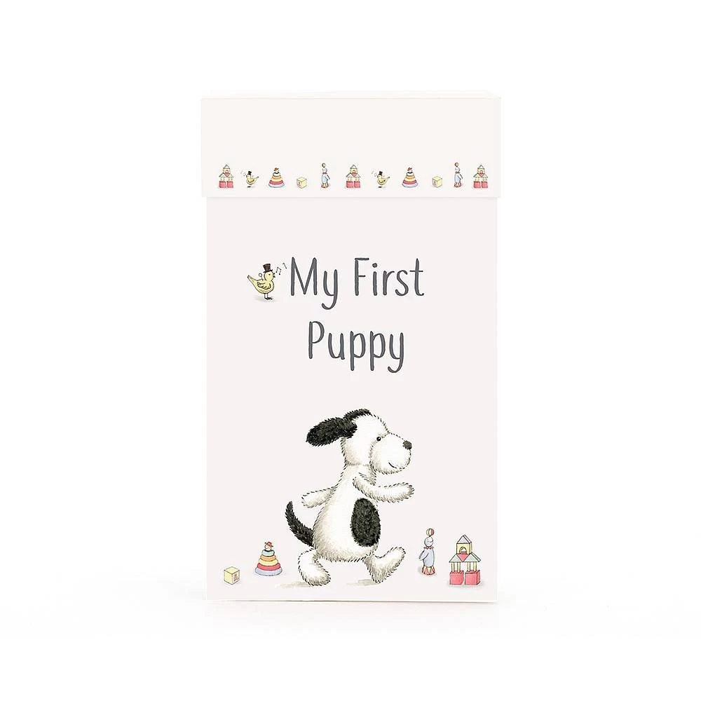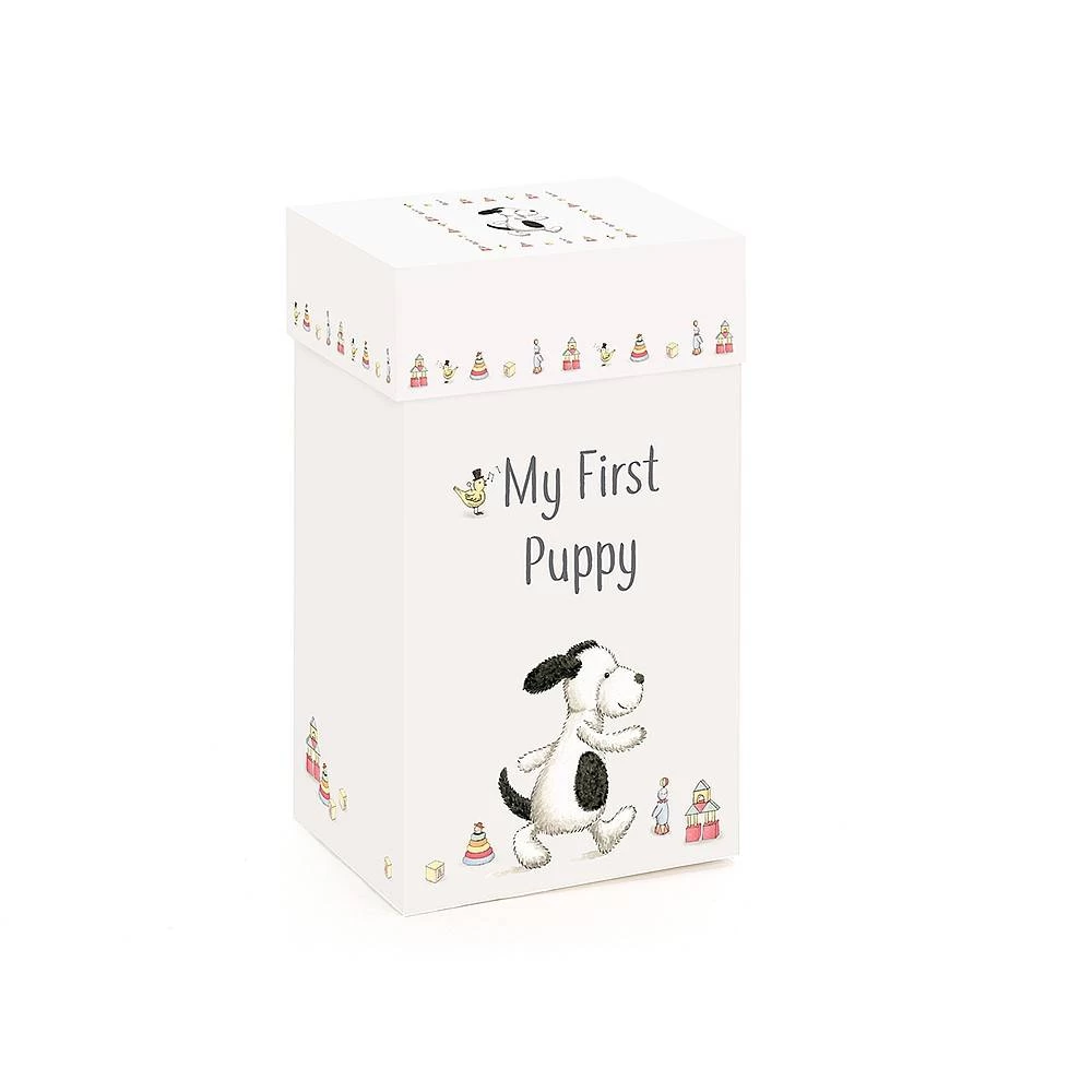My first puppy van Jellycat is een heel mooi kraamcadeautje. Deze lieve knuffelhond wordt geleverd in een mooie geschenkverpakking. De puppy is knuffelzacht en heeft opvallend zwarte oren. Hoogte: 19 cm.