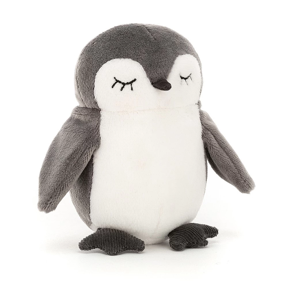 Minikin Penguin van Jellycat heeft slaap. Haar oogjes zijn al dicht. Haar vacht is knuffelzacht. Deze pinguïn is het perfecte maatje voor in bed.