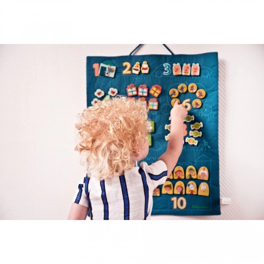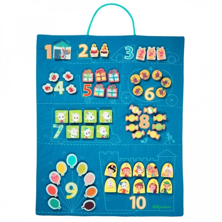 Dit slimme telpaneel van Lilliputiens laat de kinderen kennismaken met de cijfers op een leuke visuele manier. Leer je kinderen tot 10 tellen met de mooi geïllustreerde kaartjes die het verhaal vertellen van Alice’s verjaardag.