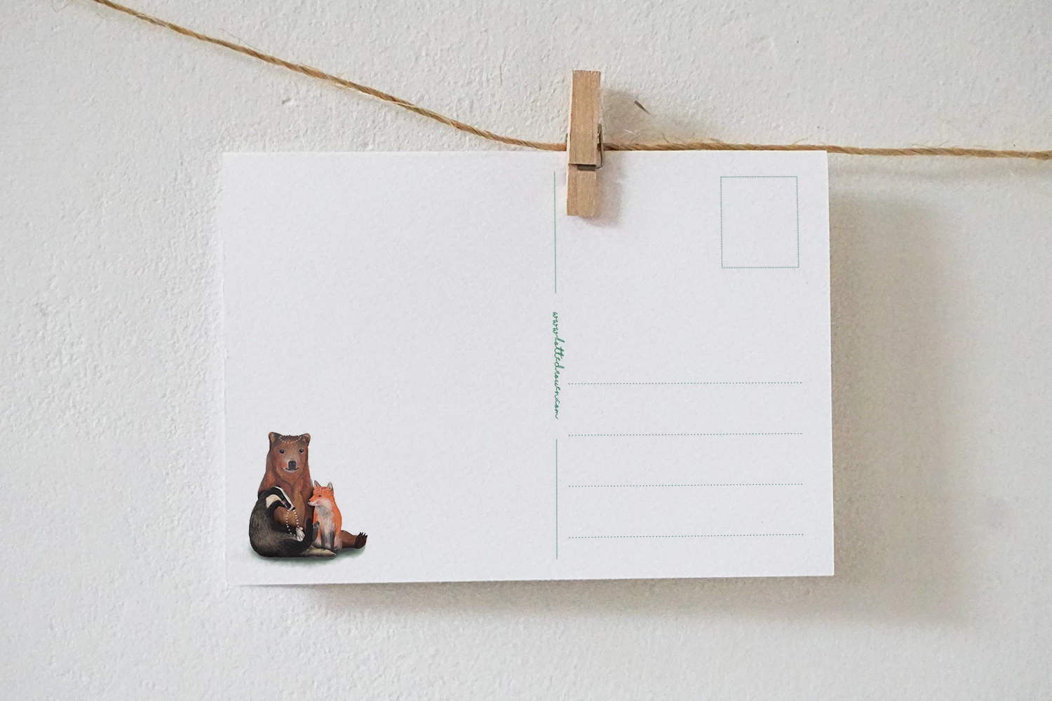 De illustratie van de kaarten van Lotte Drouen zijn door haar persoonlijk met de hand getekend en worden in kleine oplages gedrukt op mooi en dik structuurpapier. Het is zo net een klein schilderijtje. Ook de achterkant van de kaart heeft een mooi ontwerp met kleurrijke lijntjes voor de naam, adres, woonplaats en postzegel en natuurlijk ook nog een leuke illustratie.
