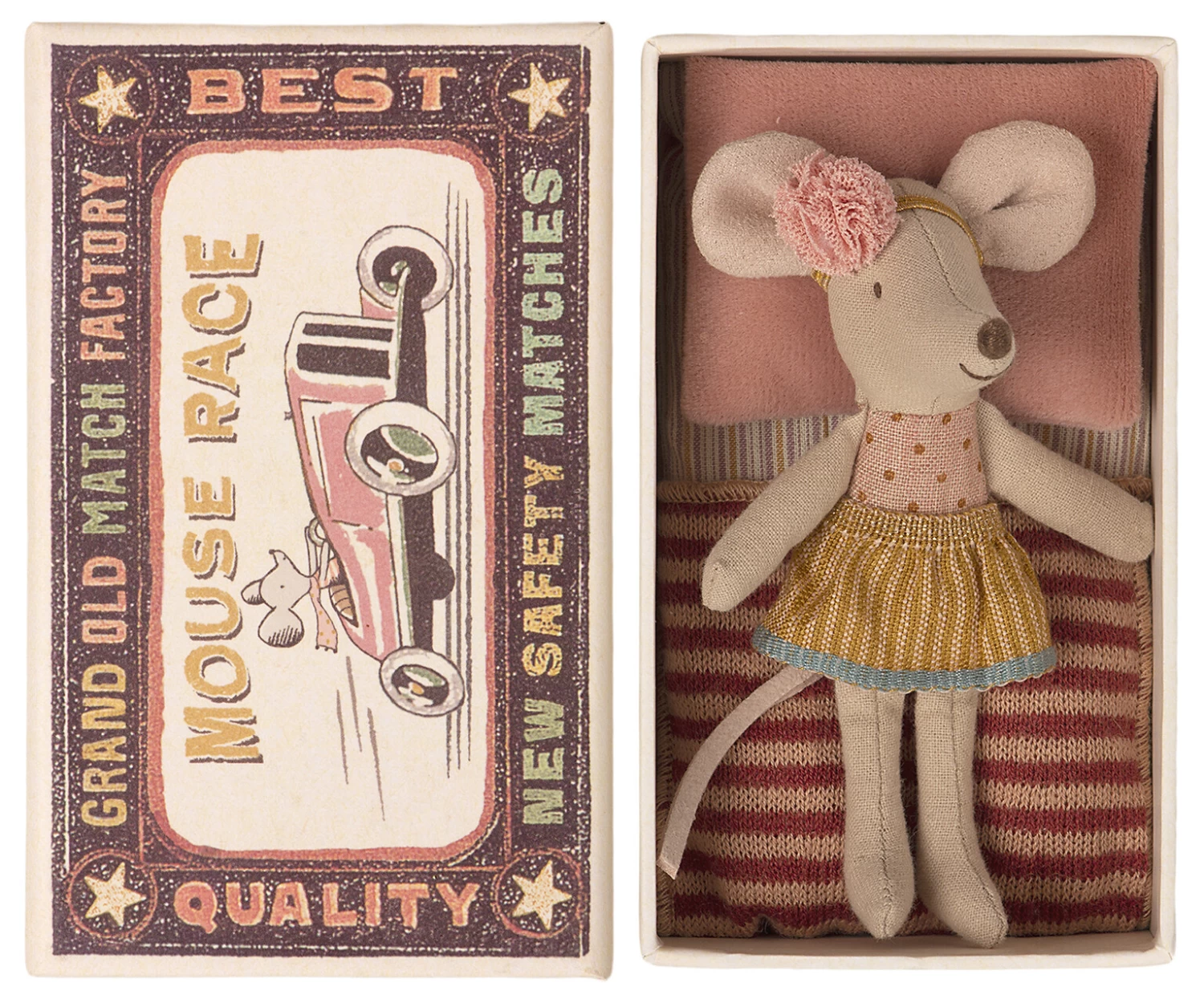 Maileg Knuffelmuis Kleine Zus in Luciferdoosje 10 cm