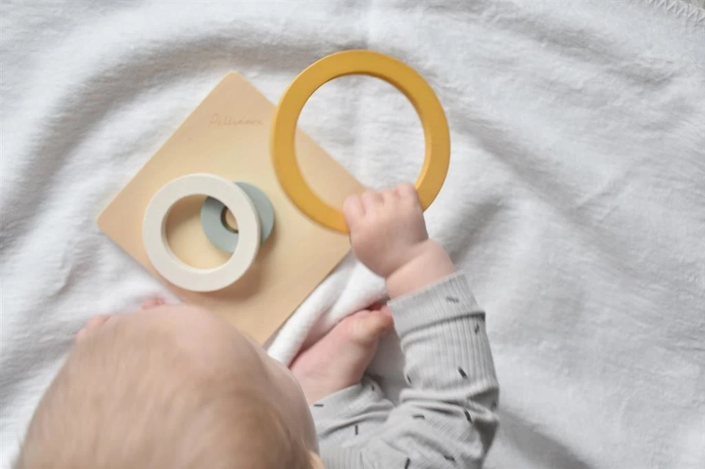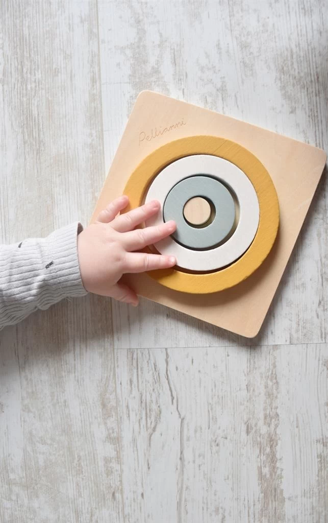 Deze mooie houten puzzel van Pellianni is de eerste puzzel die de kleintjes kunnen maken. Uitgevoerd in een zachte okerkleur en de puzzel wordt geleverd in een mooie bewaardoos. Ook mooi om te geven als kraamcadeau.