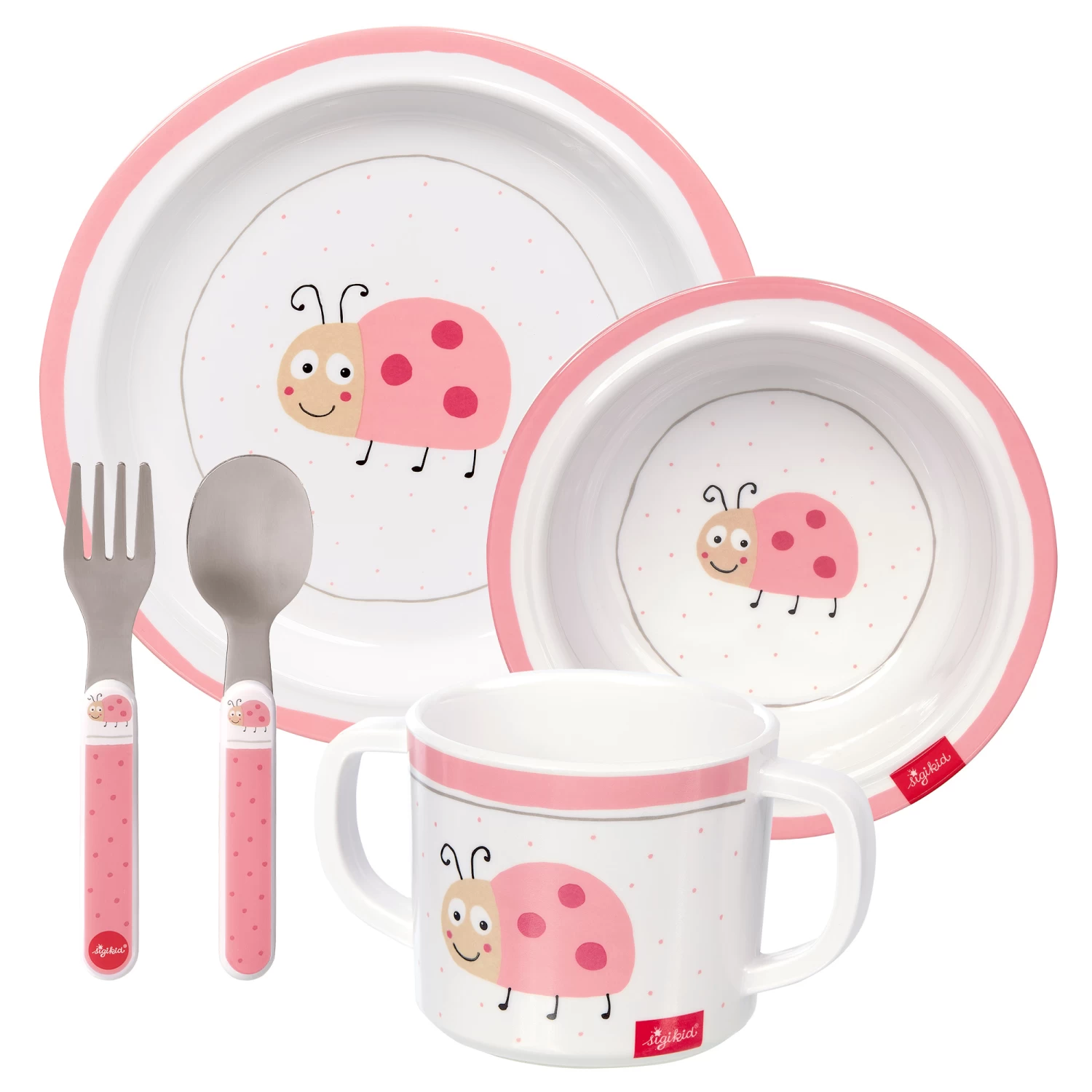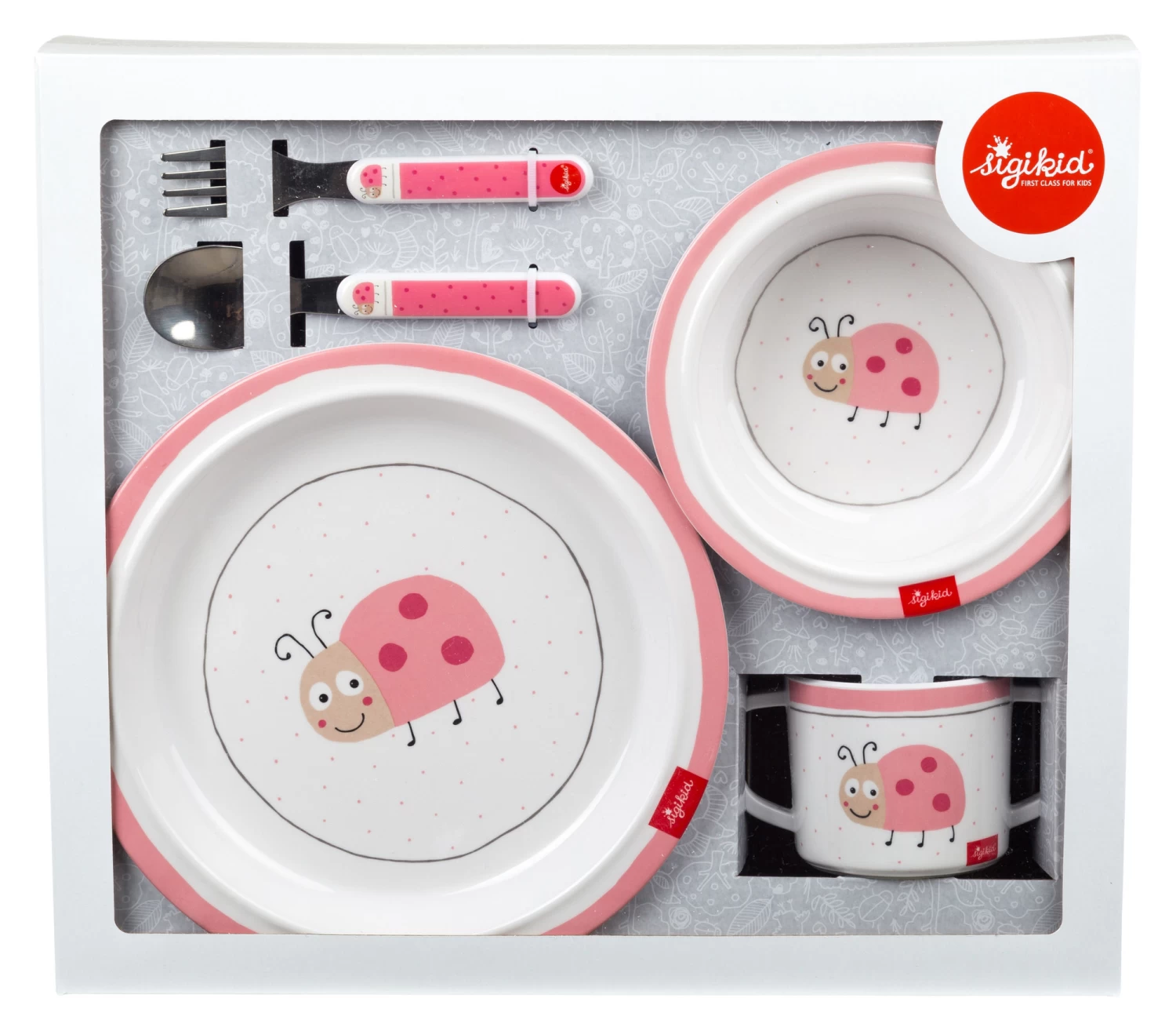 Met deze leuke 5-delige dinner set van sigikid kun je ervoor zorgen dat de kleine vrolijk aan tafel gaat Alles is vaatwasmachine en magnetron bestendig. De gebruikte materialen zijn veilig voor baby’s.