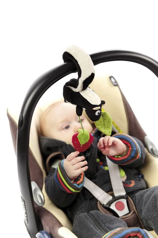 Speelplezier en pret voor onderweg. met dit grappige stinkdier van sigikid. Je kunt hem heel eenvoudig met zijn krulstaart ophangen aan de Maxi-Cosi, buggy of box en dan kijkt hij je kindje lief aan.