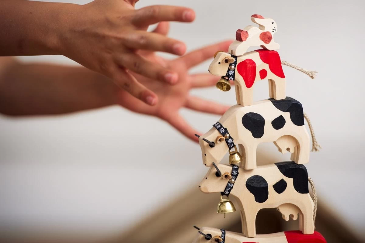 Deze bruinvee koe van Trauffer is met de hand gemaakt van lindehout in Zwitserland, de gebruikte verf is vrij van chemicaliën. De bruinvee koe is robuust genoeg om mee te spelen. Hoogte: 9 cm.