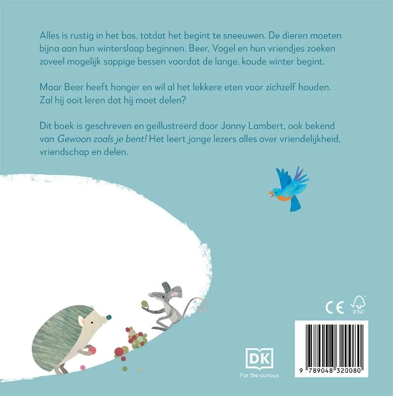 Maar Beer heeft honger en wil al het lekkere eten voor zichzelf houden. Zal hij ooit leren dat hij moet delen? Dit boek is geschreven en geïllustreerd door Jonny Lambert, ook bekend van Gewoon zoals je bent! Het leert jonge lezers alles over vriendelijkheid, vriendschap en delen.