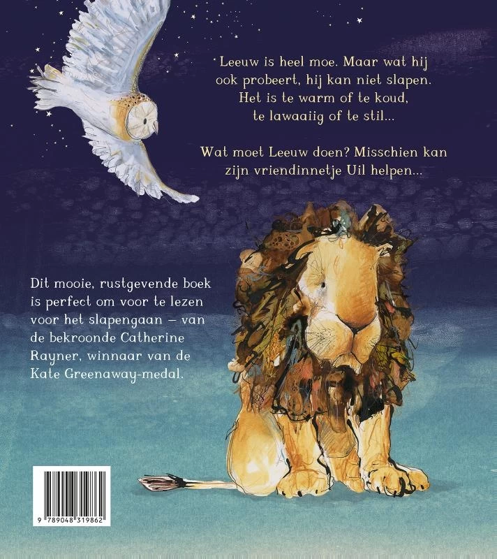 Leeuw is heel moe. Maar wat hij ook probeert, hij kan niet slapen. Het is te warm of te koud, te lawaaiig of te stil… Wat moet hij doen? Misschien kan zijn vriendinnetje Uil helpen… Dit mooie, rustgevende boek is perfect om voor te lezen voor het slap