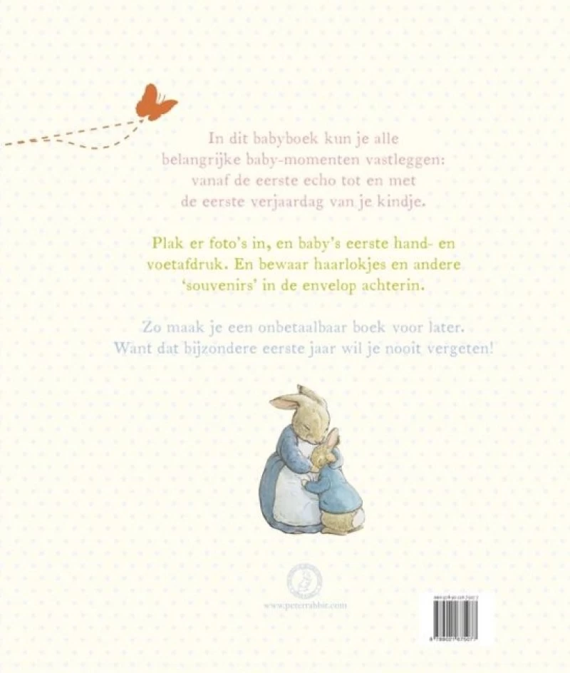In dit babyboek kun je alle belangrijke baby-momenten vastleggen: vanaf de eerste echo tot en met de eerste verjaardag van je kindje. Plak er foto’s in en baby’s eerste hand- en voetafdruk. En bewaar haarlokjes en andere ‘souvenirs’ in de envelop achterin